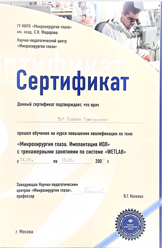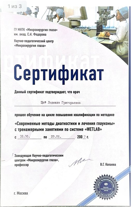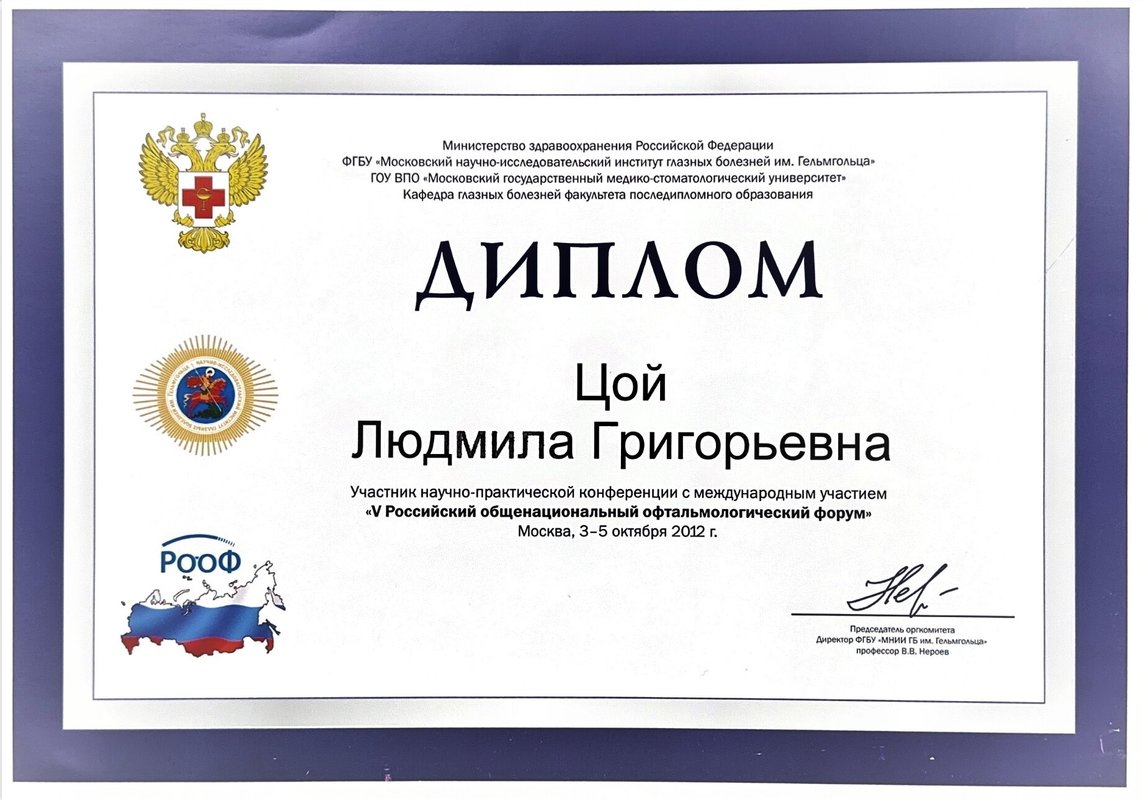 Преимущества: Выражаем огромную благодарность доктору Людмиле Григорьевна Цой за качественный подбор очков для моего сына школьника, пришли второй раз спустя три года снова уже с двумя сыновьями, так как довольны внимательным отношением и качественными услугами.